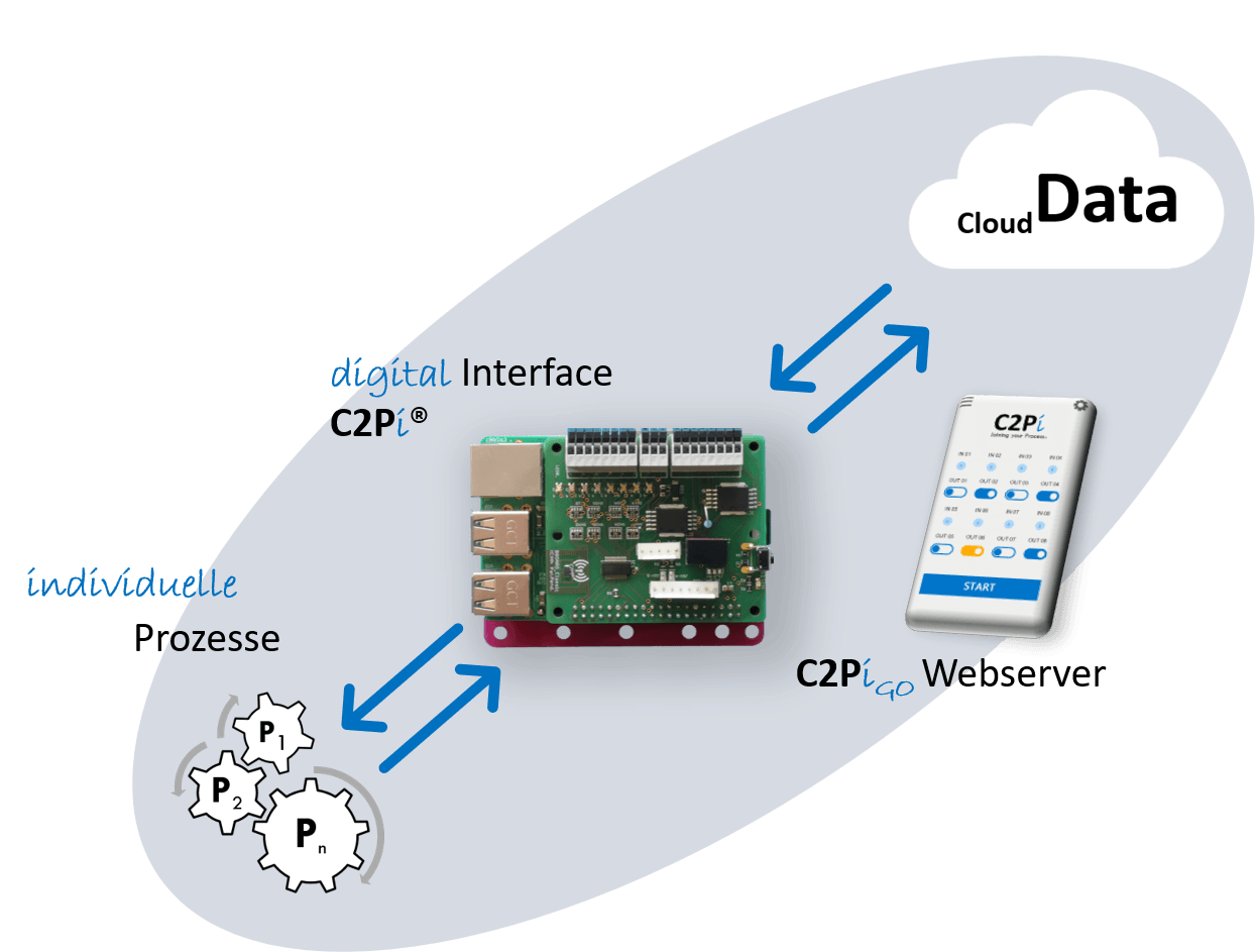 Vorhandene Maschinen über C2Pi lokal oder per Cloud vernetzen.